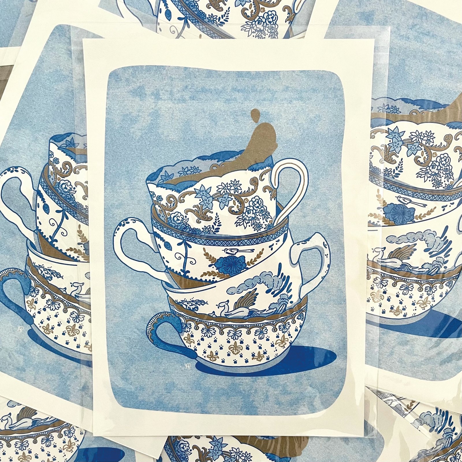 Les tasses - Illustration en risographie