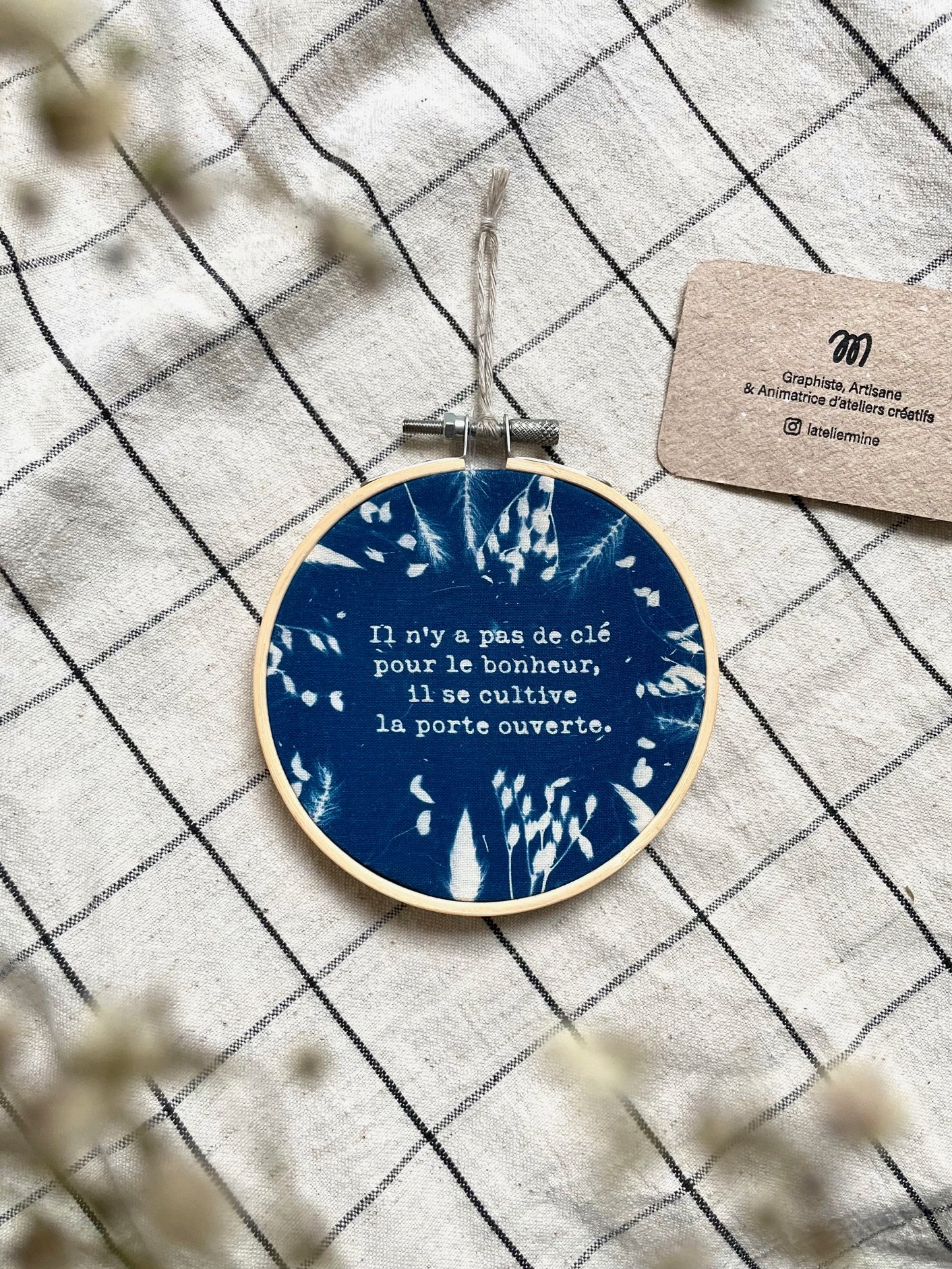 Le bonheur - Tambour cyanotype à accrocher